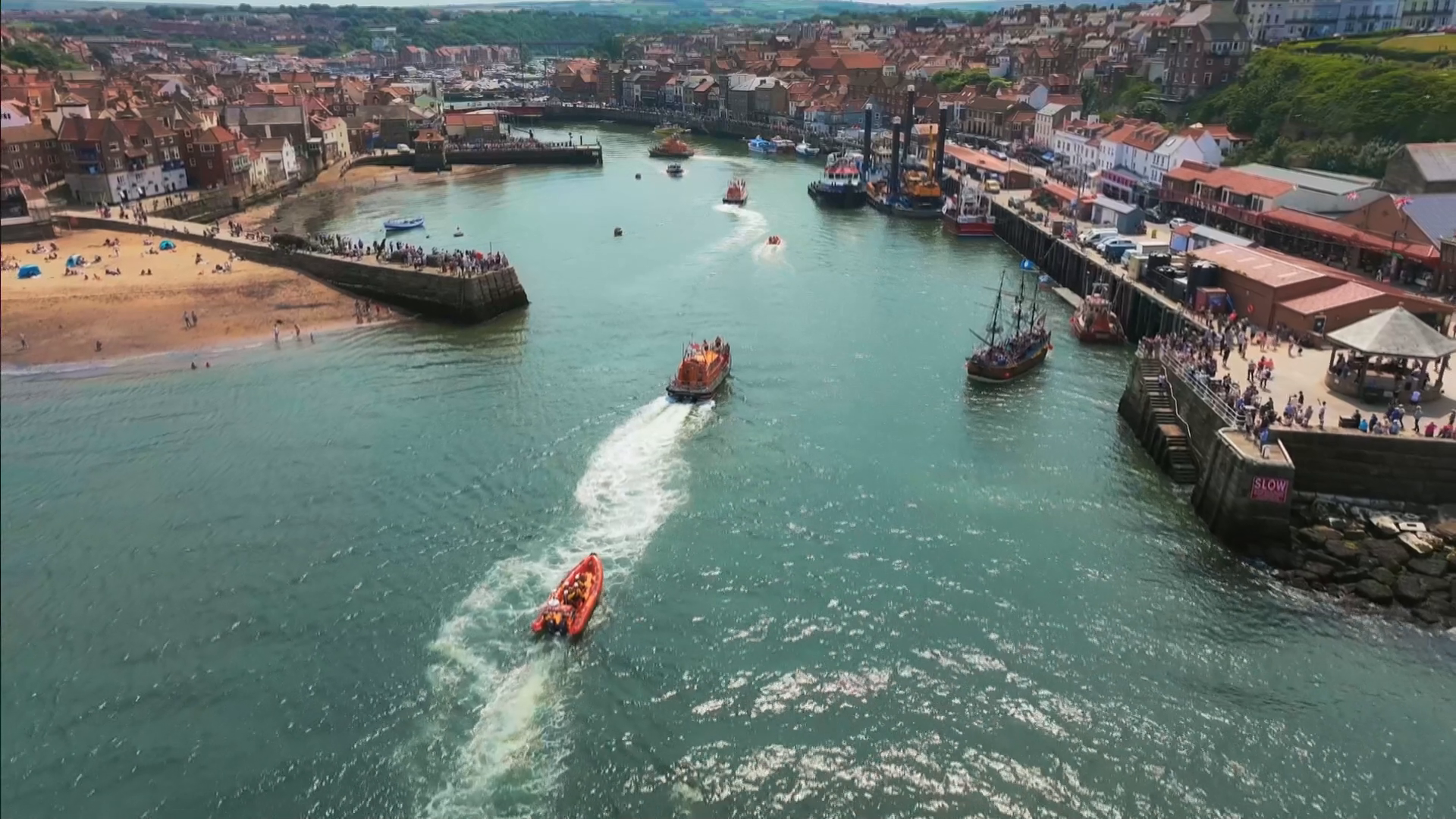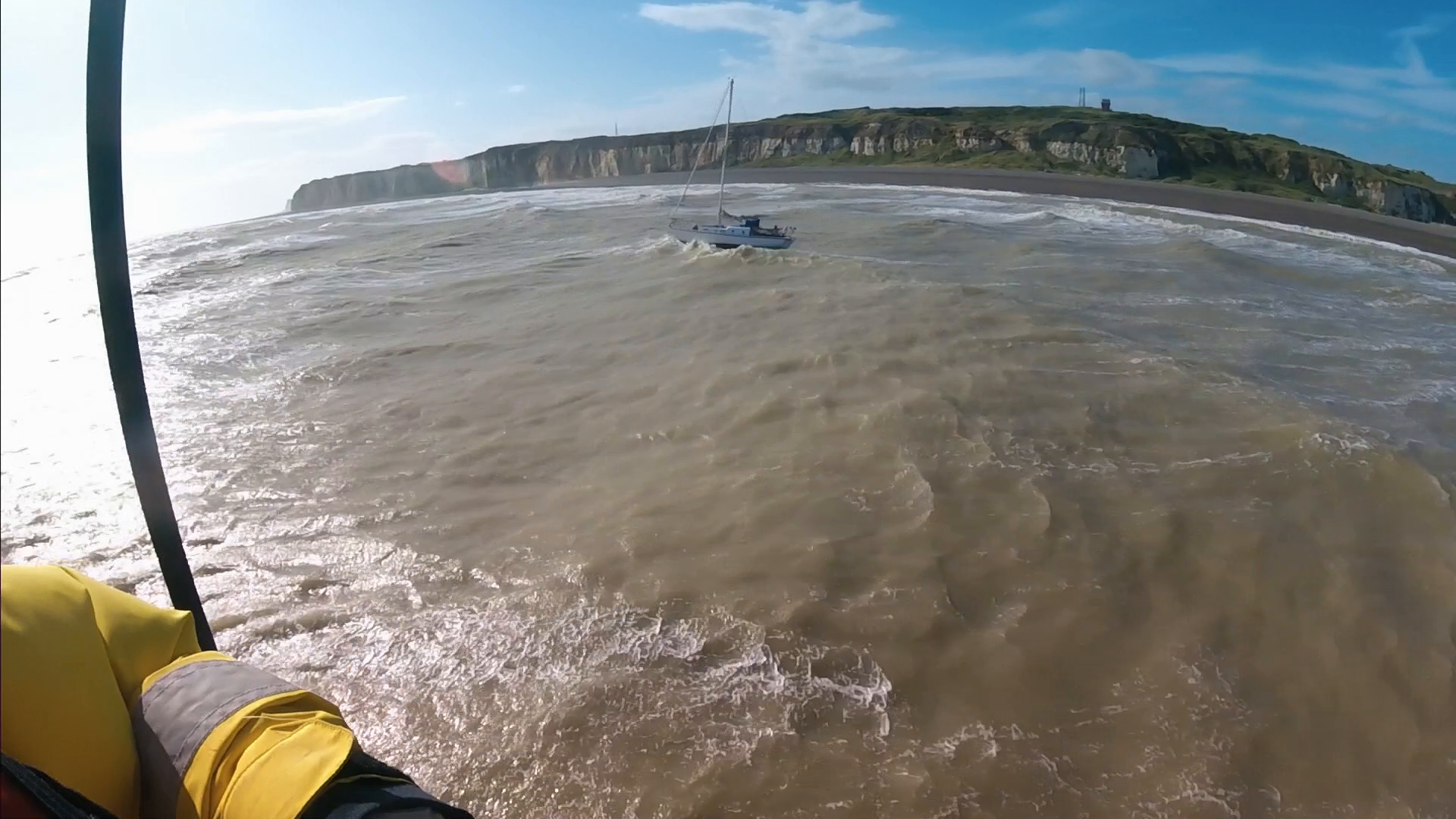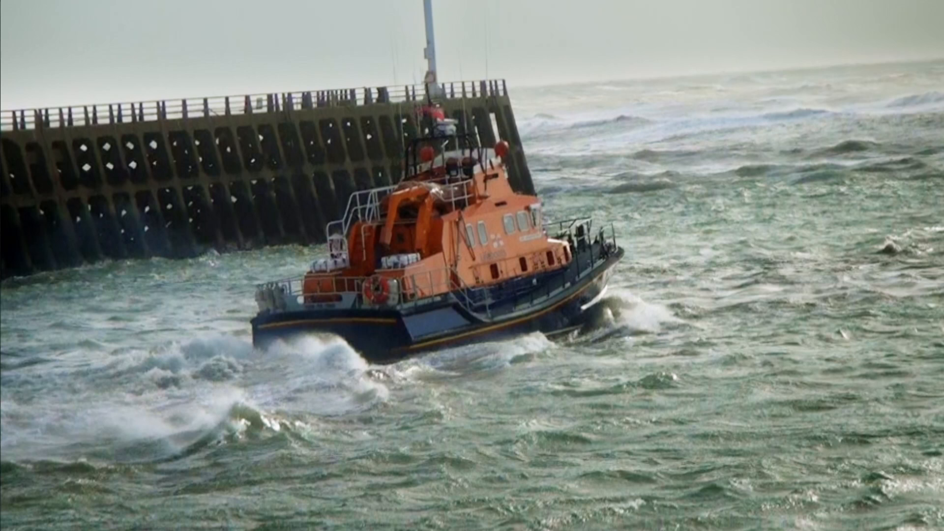 The Newhaven crew make a desperate attempt to rescue a yachtsman before his vessel is smashed on the rocks.