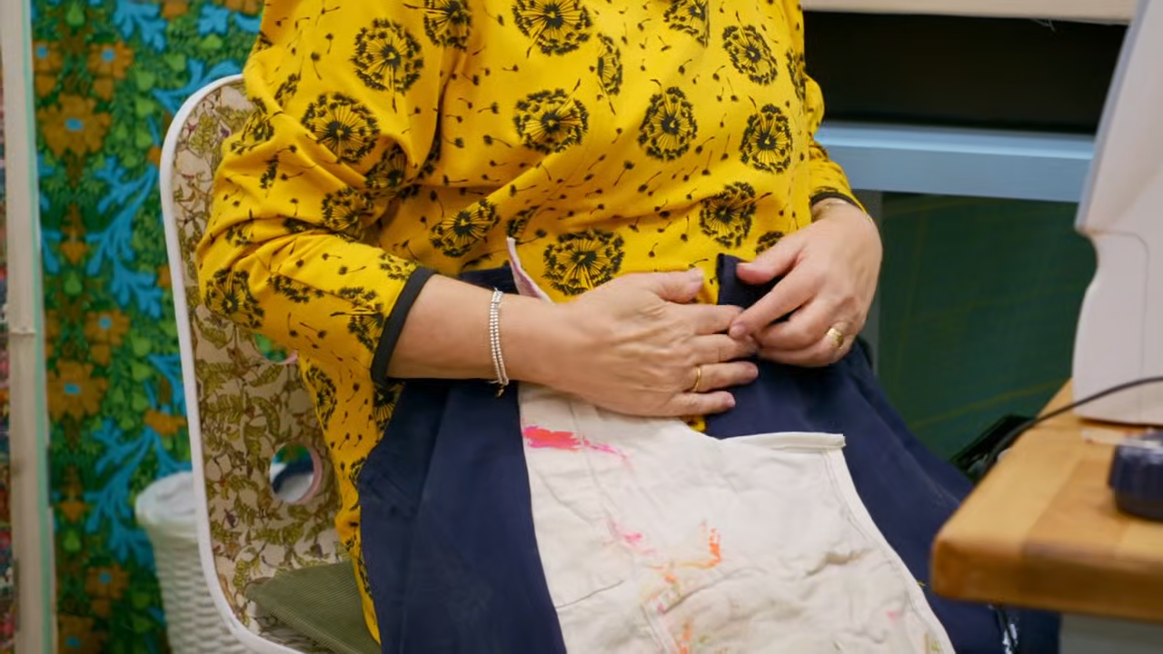 Next, in the Transformation Challenge, the sewers work with used painter's overalls, which they must turn into an asymmetric outfit, showcasing their creativity and resourcefulness.