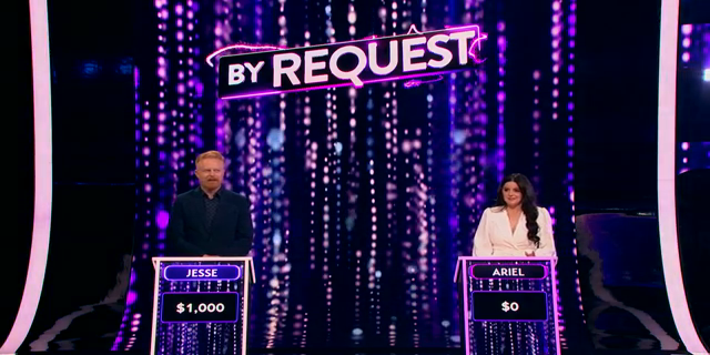 Celebrity contestants Jesse Tyler Ferguson and Ariel Winter face off in game one; a university program director and a retired assembly worker compete in game two.