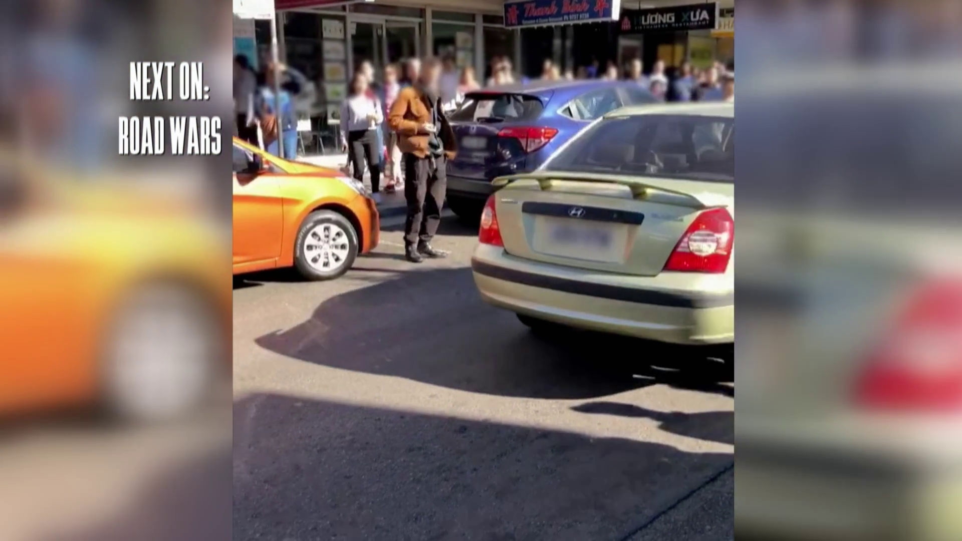 A car in Texas rams a motorcycle trying to pass on a double yellow line. A driver in Australia is nearly dragged out of his car window allegedly over a parking spot.