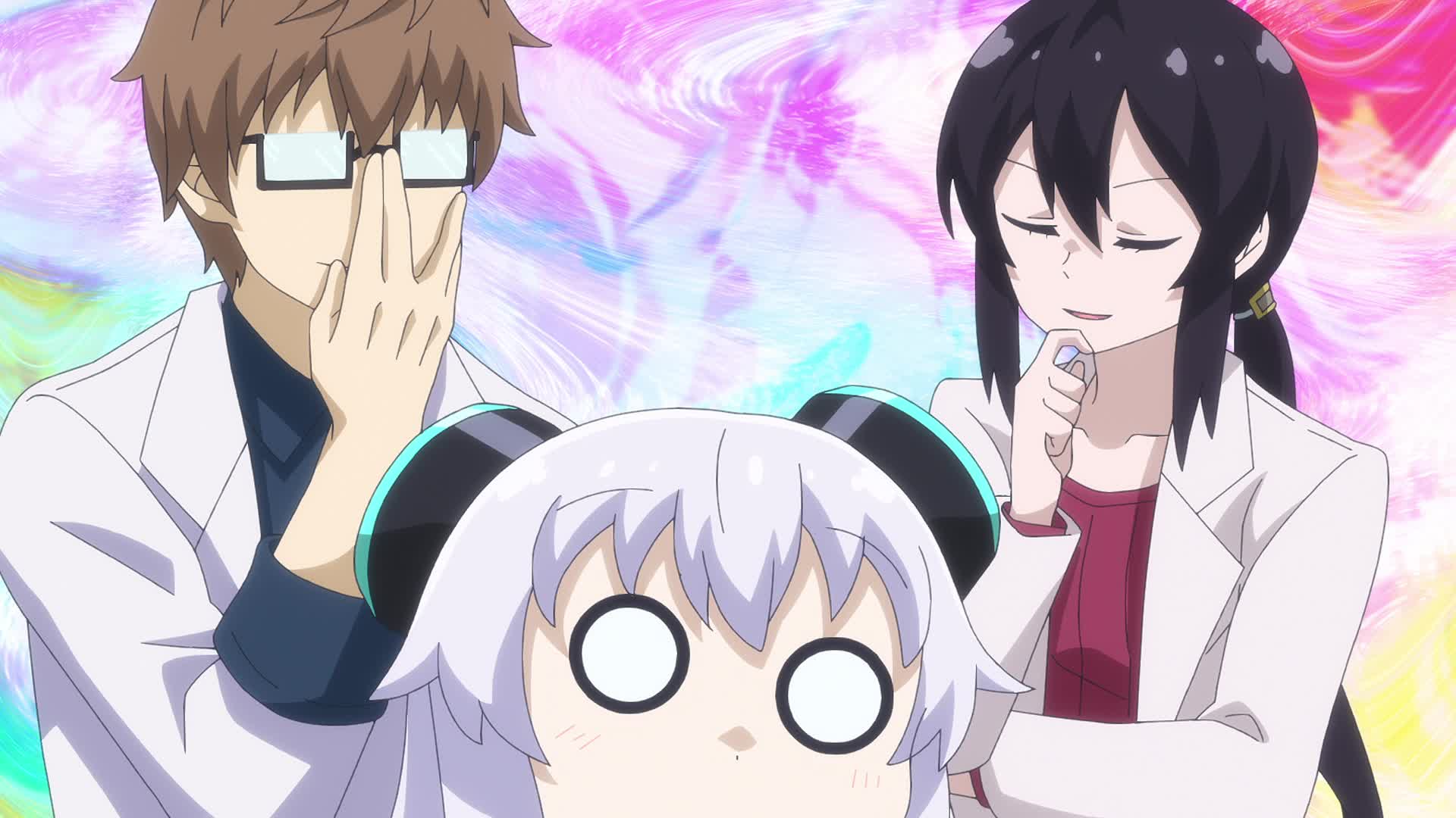Suzume performs maintenance on the space-worn Alma, and Alma performs maintenance on the cold-stricken Suzume.
