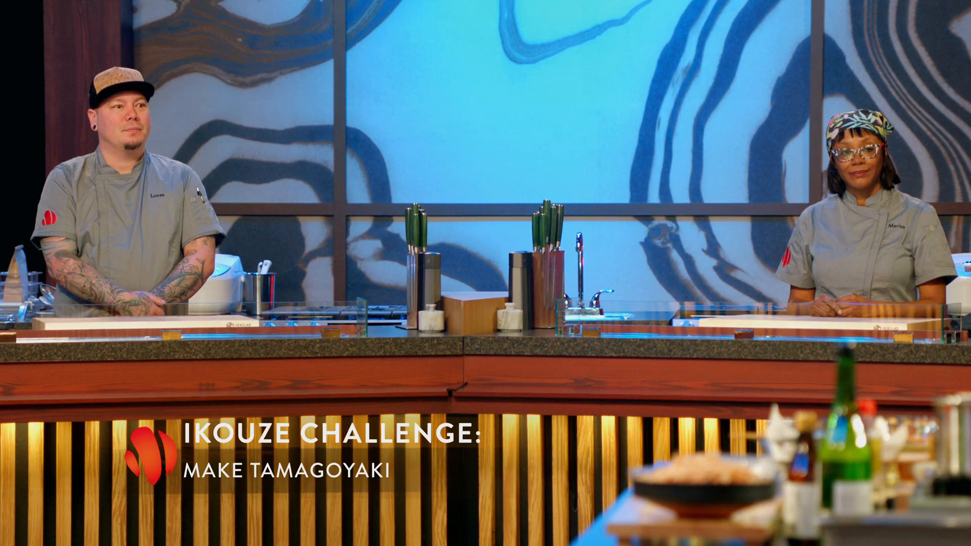 Chef Morimoto demonstrates how to prepare tamagoyaki before challenging the chefs to make their own version of the dish; the chefs must create a thoughtful, composed and delicious bento box, including an element inspired by a family member.
