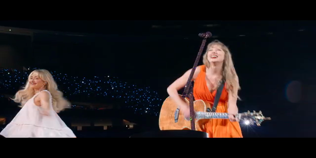 Taylor reflects on her acoustic sets, and welcomes Travis Kelce and Sabrina Carpenter to the stage.