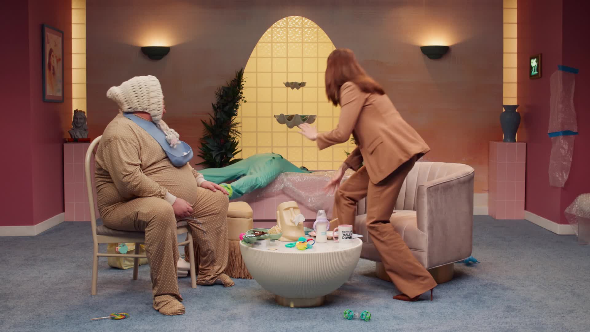 Vic interviews babies Archimedes and Ollie (Brennan Lee Mulligan and Jacob Wysocki).