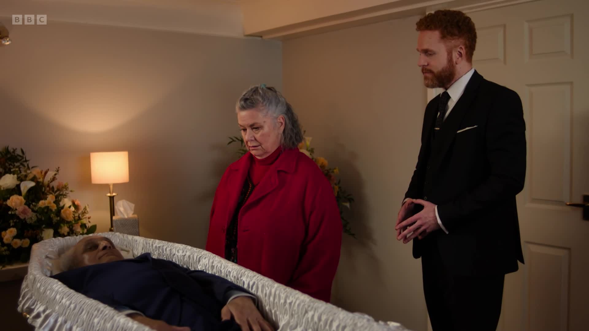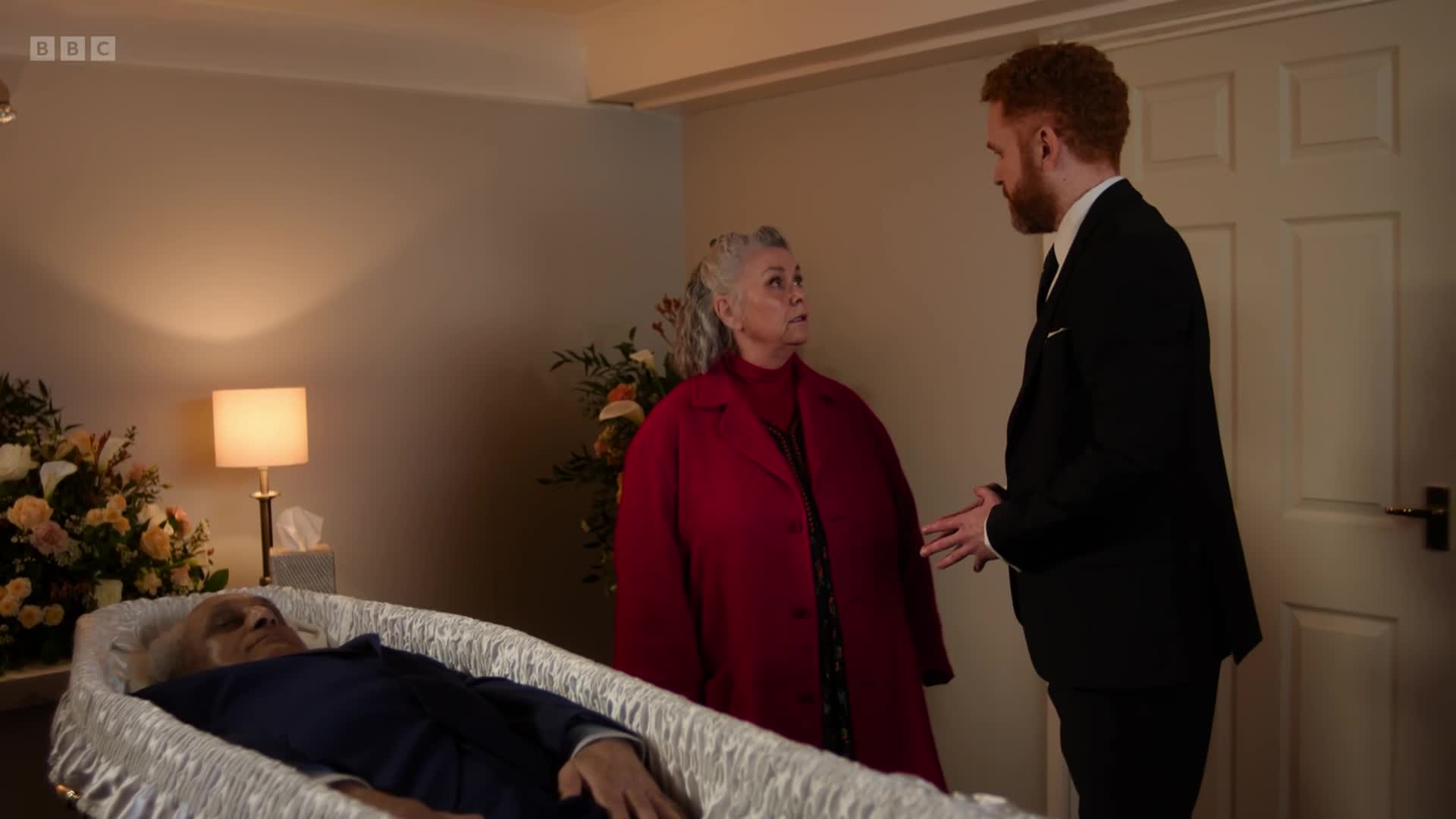 Debbie has news: Harry's dad isn't actually dead, he's just hiding in the loft so they can swindle the cash from his life insurance. Will Harry join these two twits in their scam?