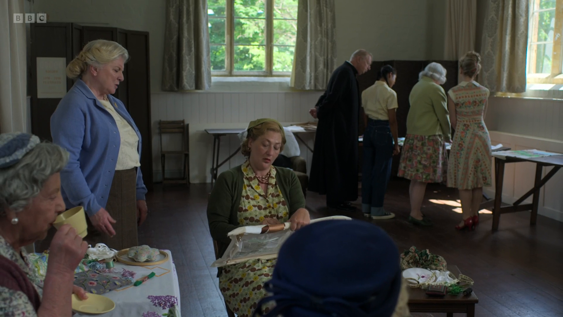 Father Brown must untangle the mysteries that lie within the sewing circle when a seamstress is stabbed to death.