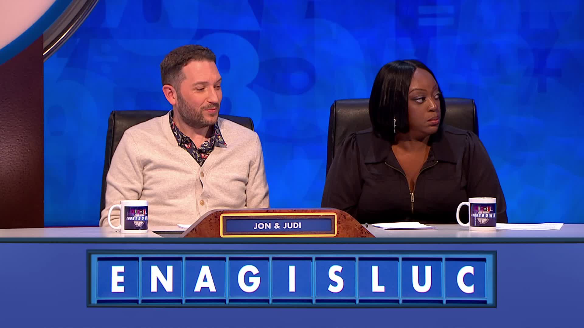 Jimmy Carr hosts the comedy words-and-numbers quiz, with panellists putting their mental agility to the test. Jon Richardson and Judi Love take on Rob Beckett and Katherine Parkinson. Spencer Jones joins Susie Dent in Dictionary Corner, while maths whizz Rachel Riley looks after the numbers.