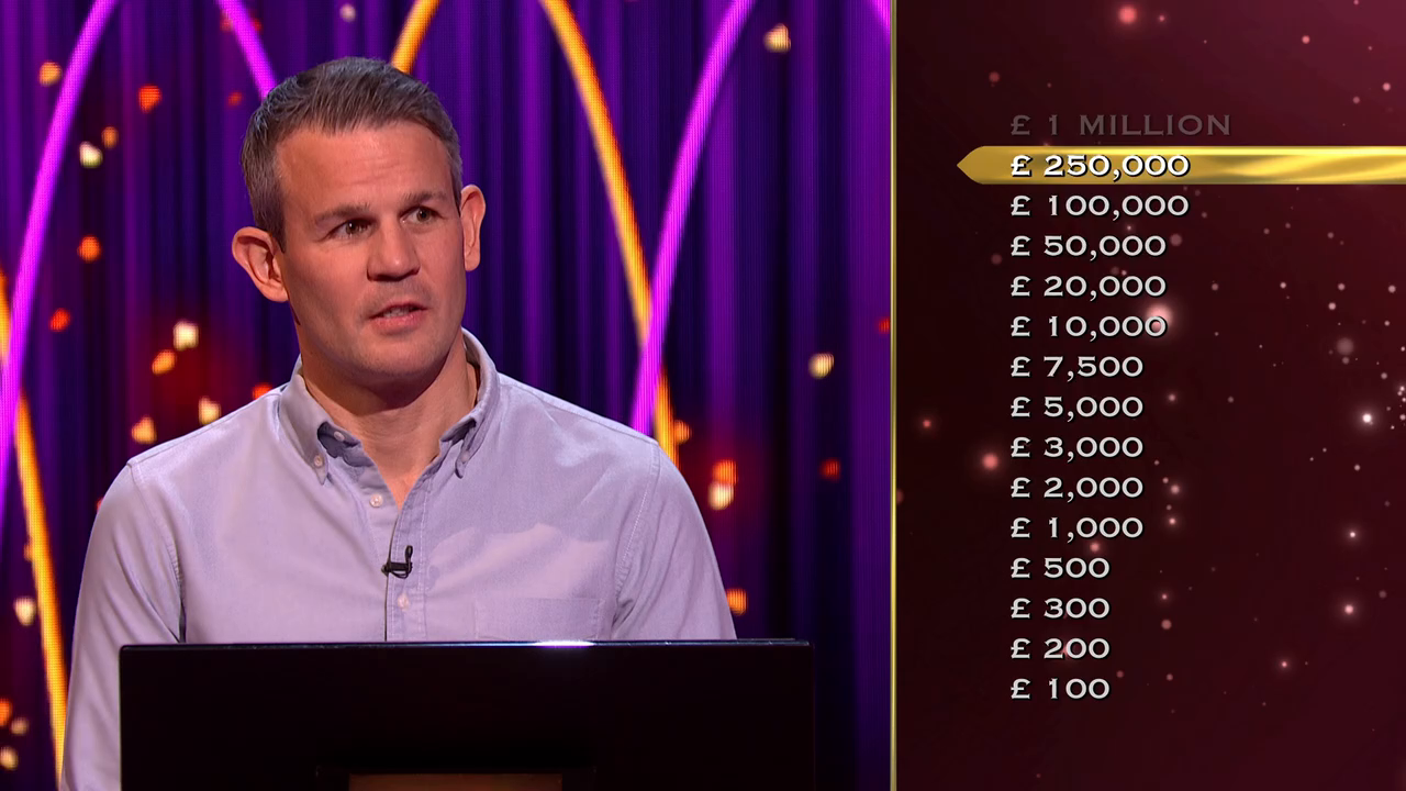 Jeremy Clarkson hosts the exciting and fast-paced quiz where each episode sees six hopefuls compete for a one-million-pound prize - however, only one player can take their place in the Hot Seat at a time and answer multiple-choice questions to work their way up the Money Ladder.