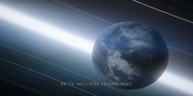 Dinosaurs rule the entire planet, with T. rex as the most deadly. But as the continents split and drift, danger lurks far away in the depths of space.